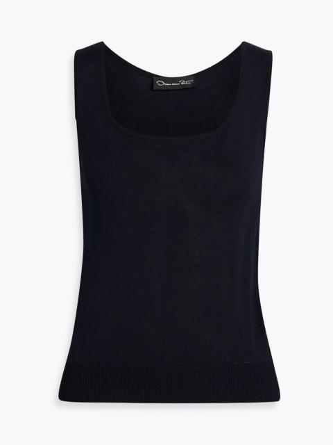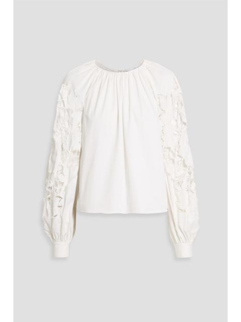 Off-the-shoulder bow-detailed open-knit cotton sweater