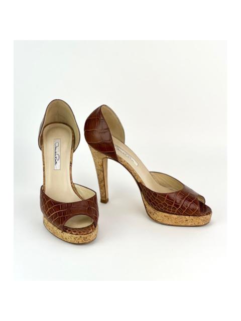 Oscar de la Renta Peep Toe Crocodile Cork Heel Shoe