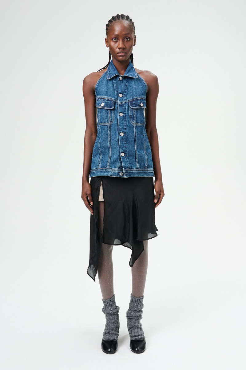 Strap Denim Vest Western Blue Denim