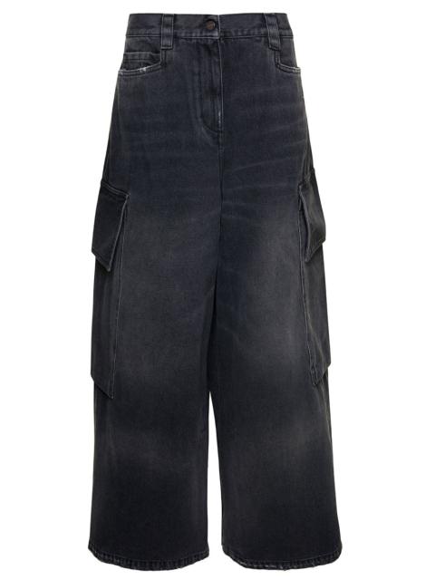 Palm Angels Women Beige 'Cargo' Pants With Embroidered Palm In Cotton Denim Woman
