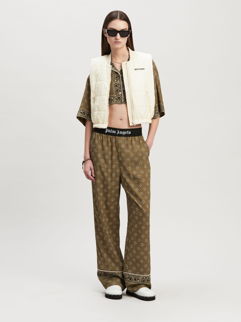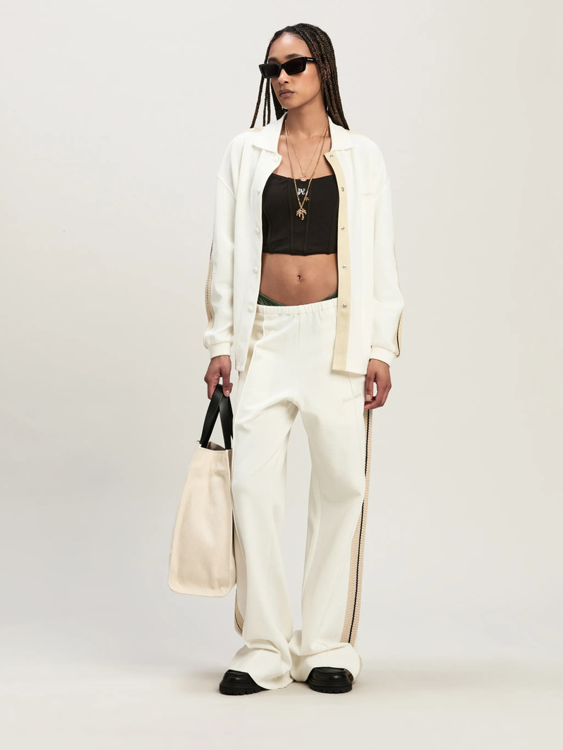 Explore the edgy yet luxurious aesthetic of Palm Angels pants in our exclusive women's clothing collection. Each pair of Palm Angels pants is designed to blend urban street style with high-fashion elements, perfect for those who appreciate bold designs and impeccable craftsmanship.