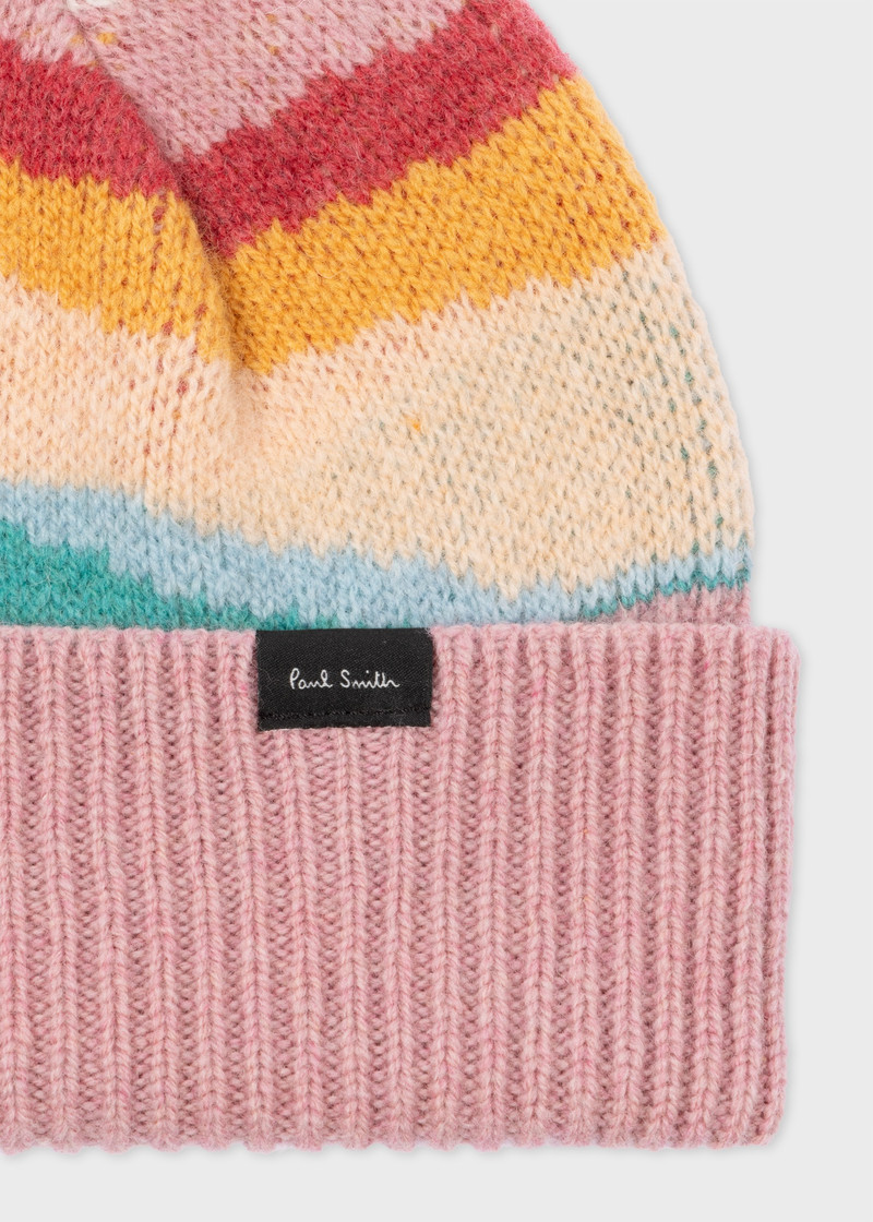- Paul SmithWomen's Pink and Beige Lambswool-Blend Block Stripe Beanie