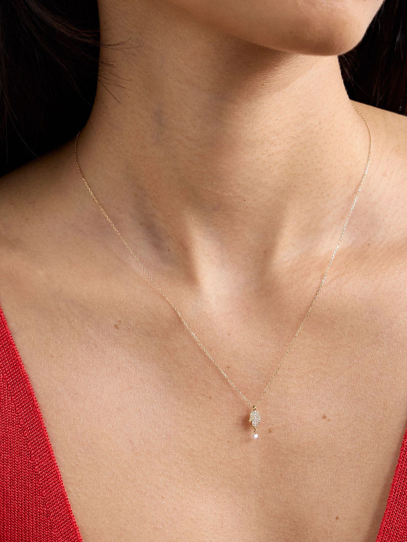 Hand of Fatima 18-karat gold diamond necklace Gold