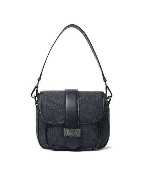 leather-trimmed shoulder bag