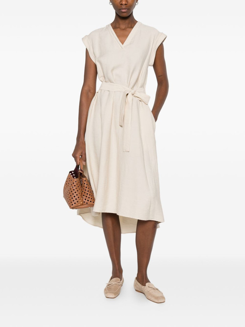 V-neck belted-waist midi dress