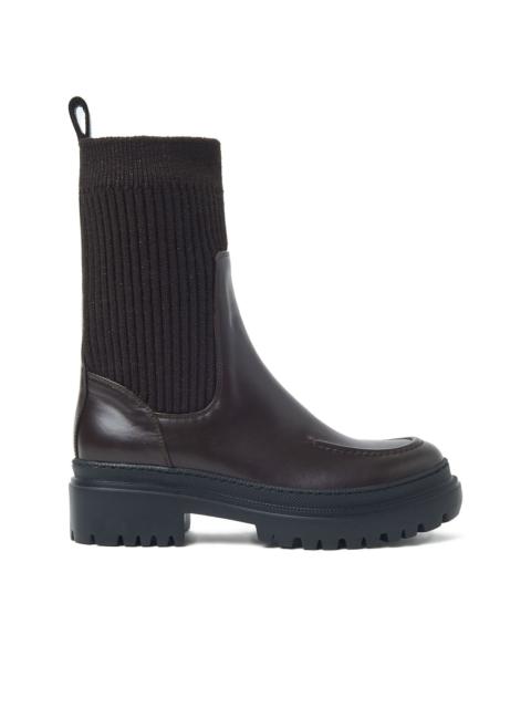 knitted-panel leather boots