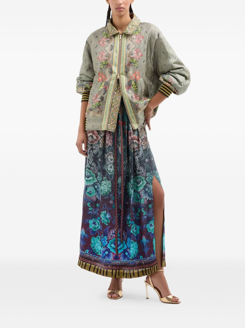 Tetris floral-pattern tie-neck kaftan