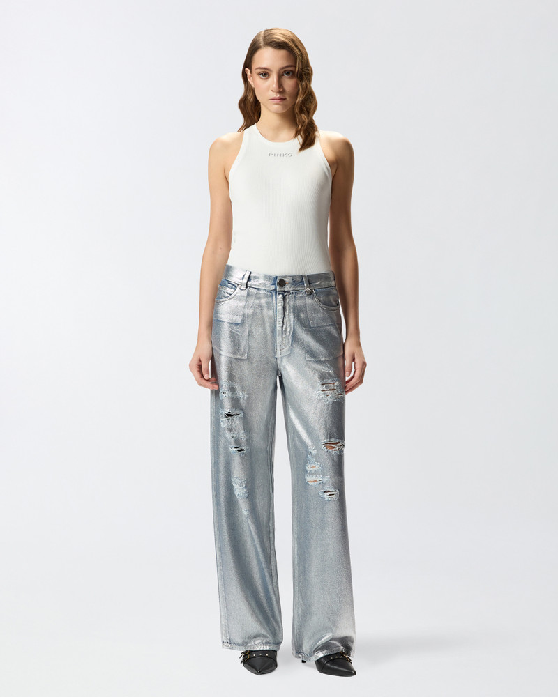 Explore the ultimate in stylish sophistication with PINKOjeans, a standout in our women's clothing collection. PINKO's selection of jeans seamlessly blends contemporary trends with timeless designs, ensuring each pair is both fashionable and functional.
