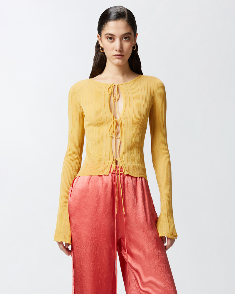 - PINKOOPEN RIBBED SWEATER WITH FRONT TIES