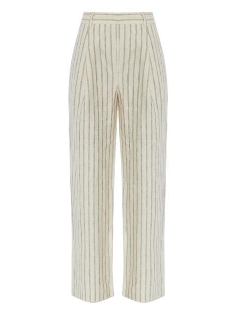 Lucille Pleated Pinstriped Linen Straight-leg Pants