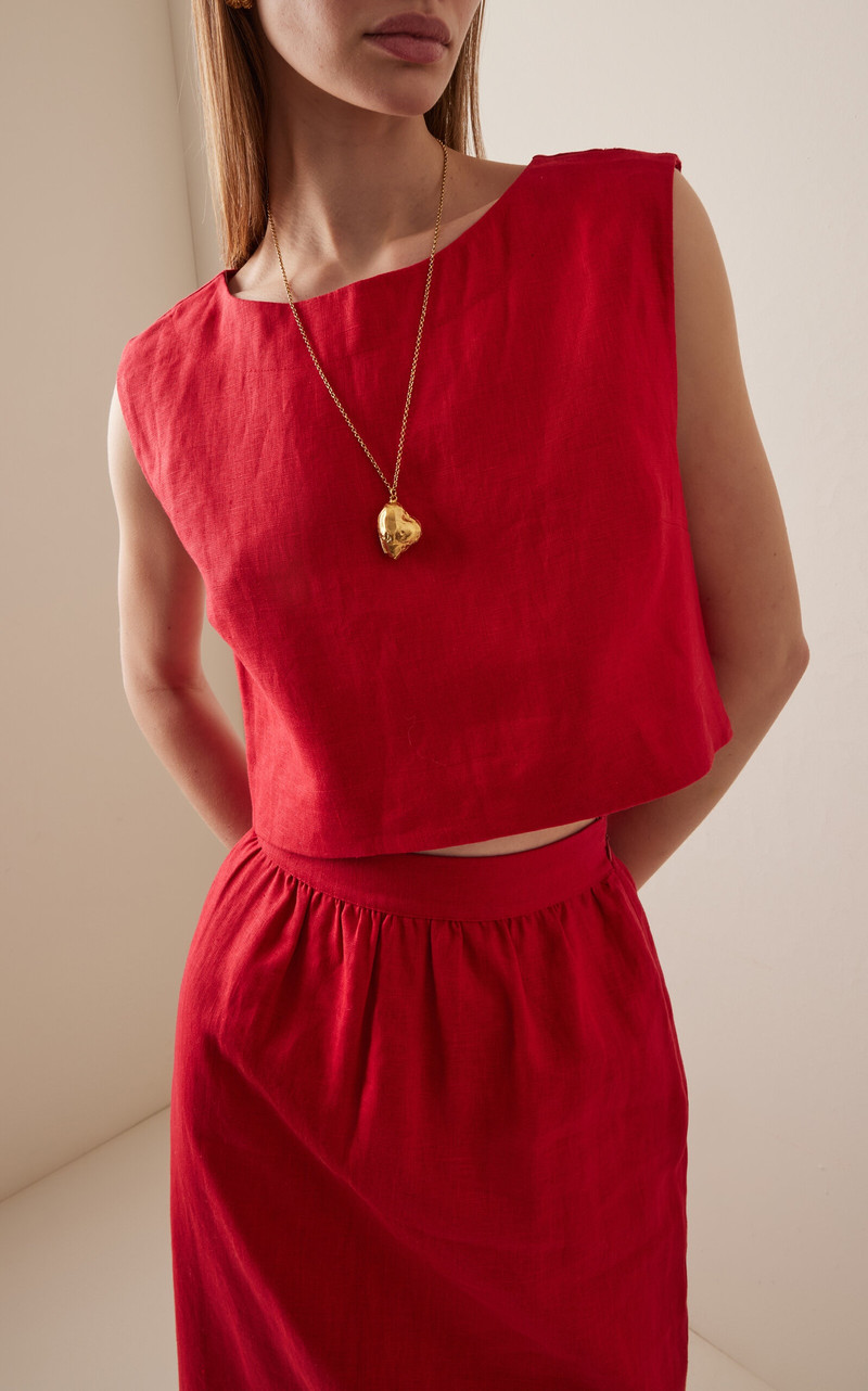 Martina Cropped Linen Top red