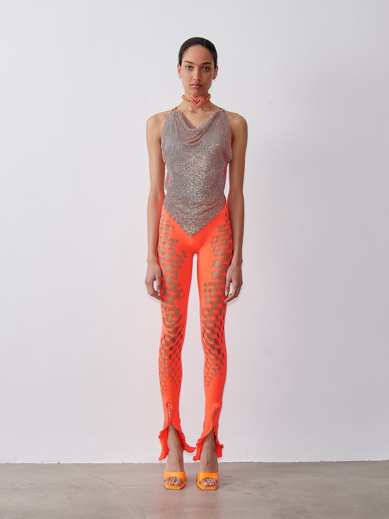 Founded in 2017 by Francesca Capper and Natasha Somerville, Poster Girl is a London-based label celebrated for its bold, hyper-feminine designs infused with Y2K nostalgia and modern sophistication. The duo, who met at Central Saint Martins, blend their experiences at esteemed fashion houses like Dior, Vivienne Westwood, and Jeremy Scott to craft daring, high-gloss collections. Known for their iconic shapewear dresses, curve-hugging jumpsuits, and dazzling chainmail creations, Poster Girl combines luxurious craftsmanship with fearless designs. With short hems, neon accents, and shimmering textures, the brand captures a confident, party-ready aesthetic that resonates with trendsetters and bold fashion icons alike.