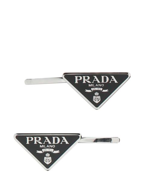 Prada Milano Pink Triangle Logo Hair Clips With Silver-Tone Accents In Original