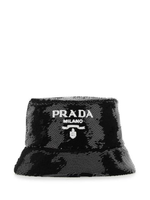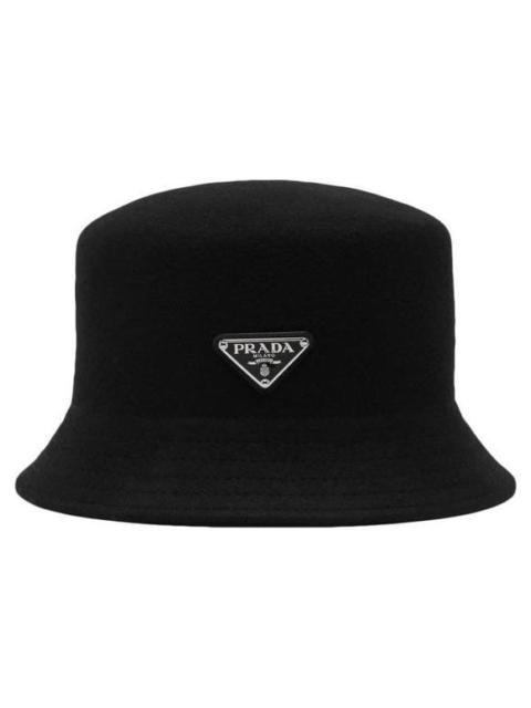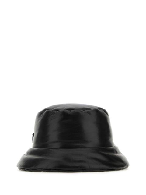 Prada Black Nylon Bucket Hat With Logo Plaque