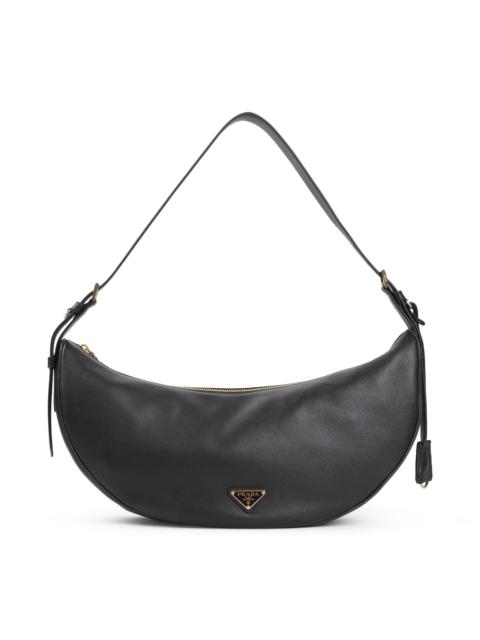 Prada Women Peach Leather Large Prada Demi-Lune Crossbody Bag