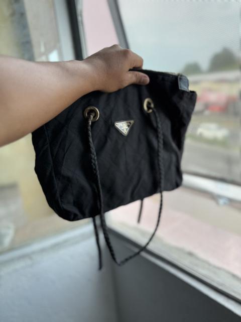 Authentic PRADA Logo Jacquard Canvas leather shoulder bag