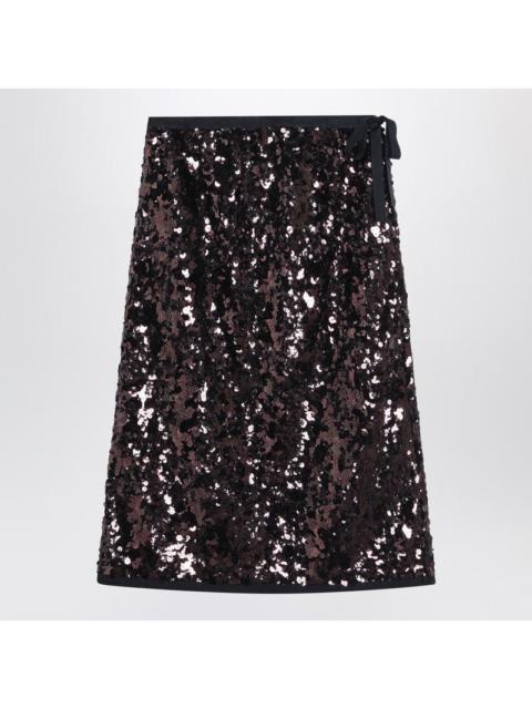 PRADA High-Waisted Denim Midi Skirt with Back Logo Plaque