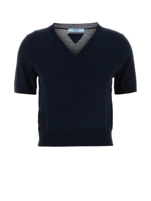 Prada Banana Inset Striped Crew Neck Long Sleeve Knit Sweater Yellow/Navy