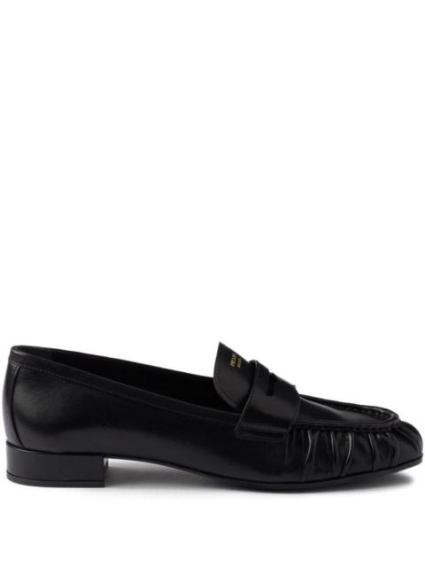 Prada Black Brushed Leather Peep-Toe Loafers Women