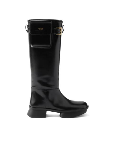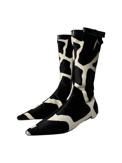 PRADA Giraffe Print Unborn Calf Leather Ribbon Knee Boots