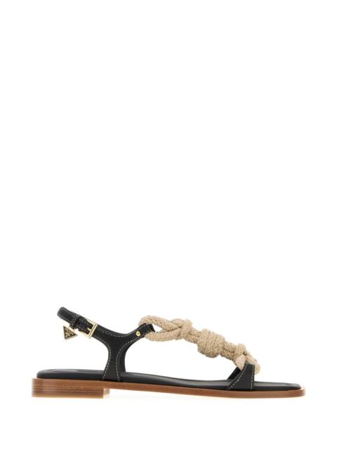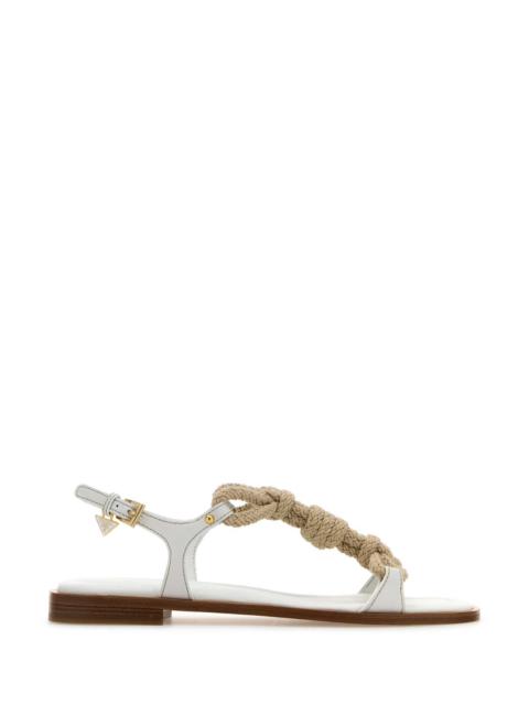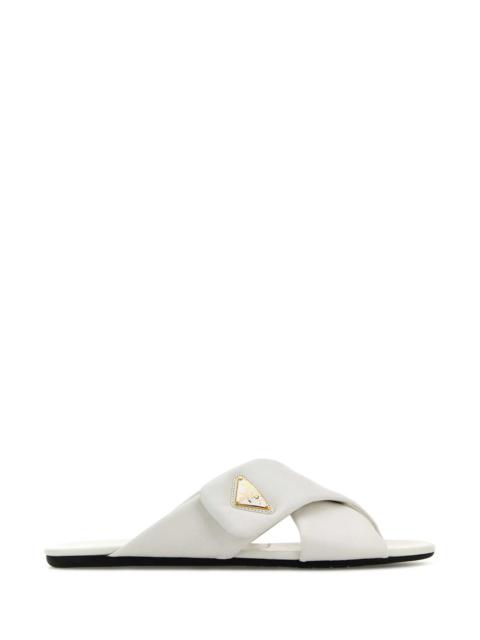 Prada Women Brushed Leather Crisscross Band Sandals With Plexiglas Buckle