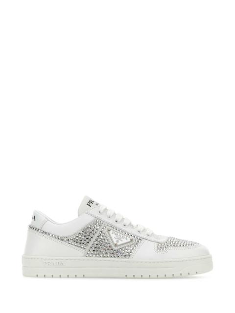 Prada Women Ivory Nappa Leather Downtown Sneakers