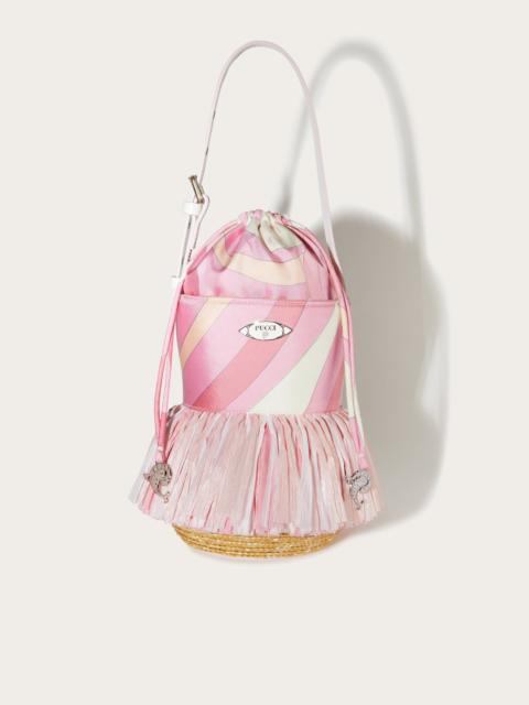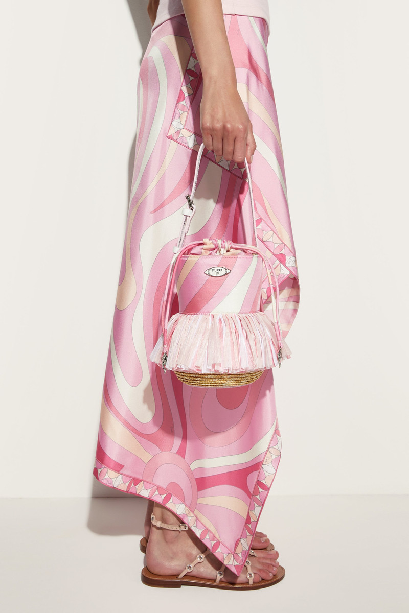 Leather-trimmed knotted printed silk-twill shoulder bag Pink
