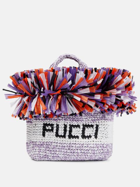 Logo Small raffia-trimmed tote