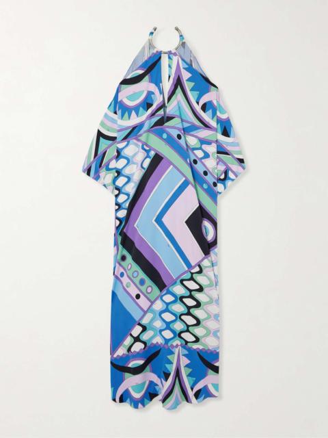 Iride-Print Crystal Neck-Tie Silk Twill Maxi Kaftan Dress