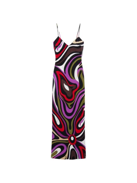 Marmo-print silk maxi dress