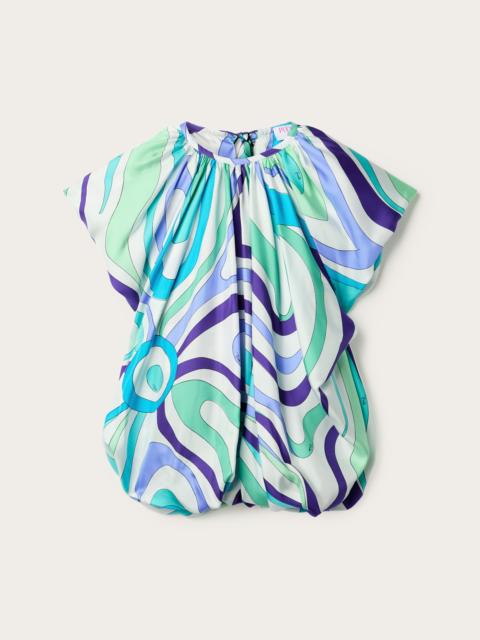 VOLUMINOUS TOP WITH PRINTED NECKLINE