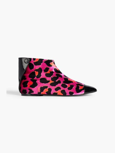 Leopard-print velvet and patent-leather ankle boots