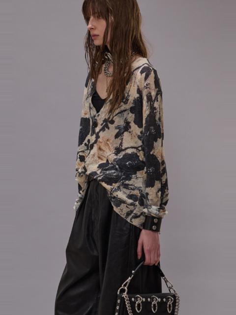 floral-print distressed cardigan