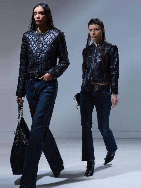 PLEATED NECK LEATHER JACKET