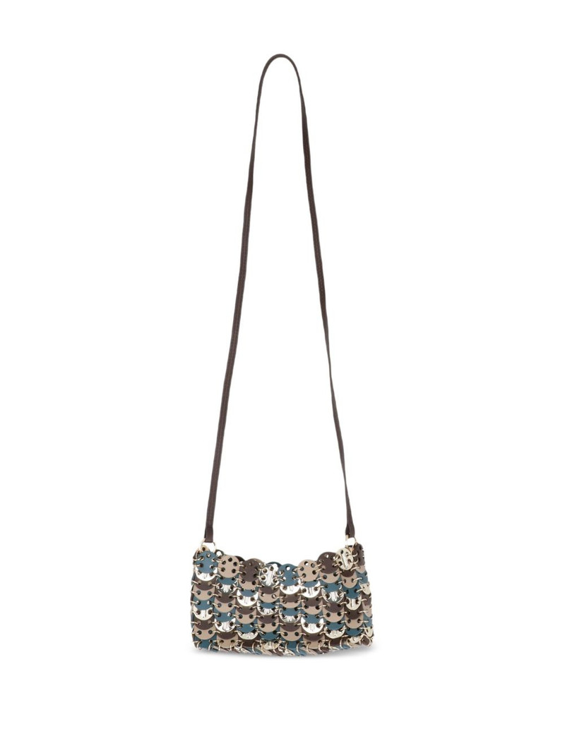 Reversible chainmail-embellished leather shoulder bag Dark brown
