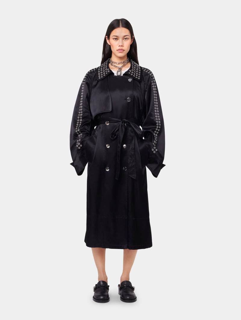 LONG WOOL COAT WITH SEQUIN COLLAR