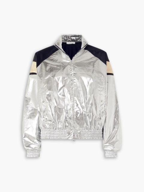 Metallic satin-trimmed coated-cotton-blend jacket