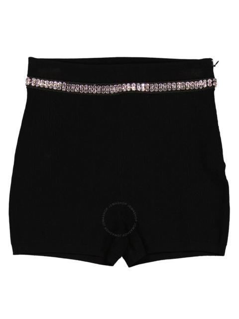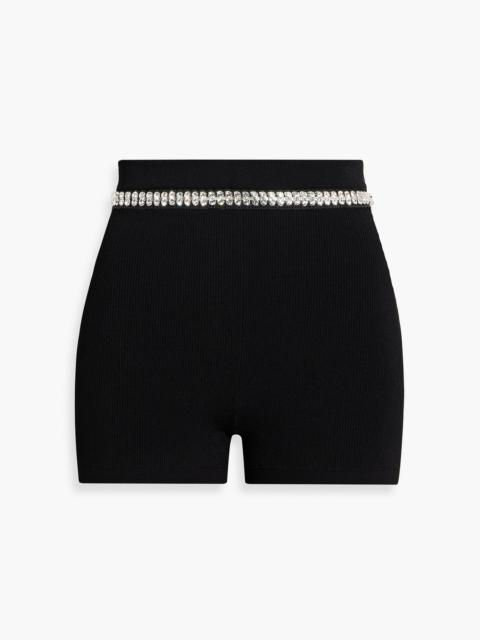 Rabanne Black Crystal-Embellished Ribbed-Knit Shorts