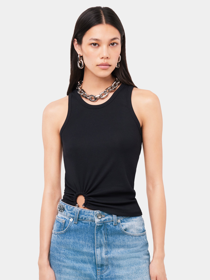 BLACK TANK TOP WITH SIGNATURE PIERCING