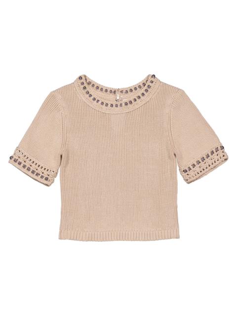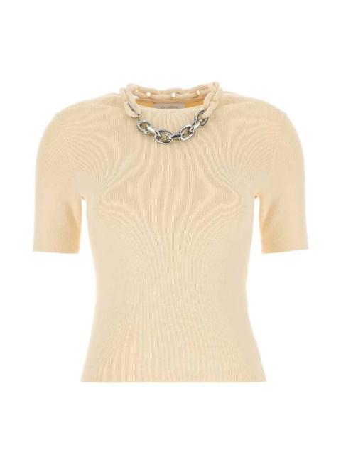 Rabanne Ladies Shiny Beige Stud-Detailed Knitted Top