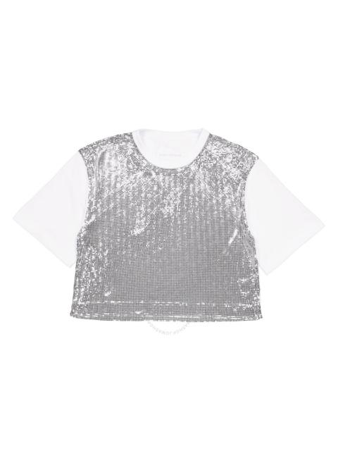 Rabanne Ladies Silver / White Metallic Mesh T-Shirt