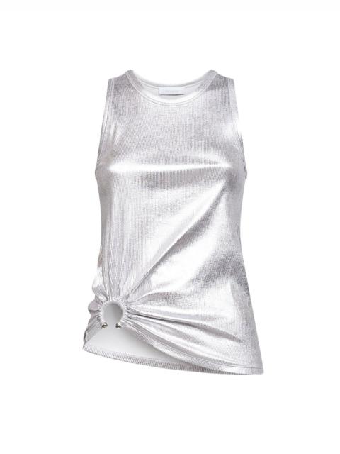Rabanne Women Silver Foil Ribbed Jersey Tank Top With Piercing