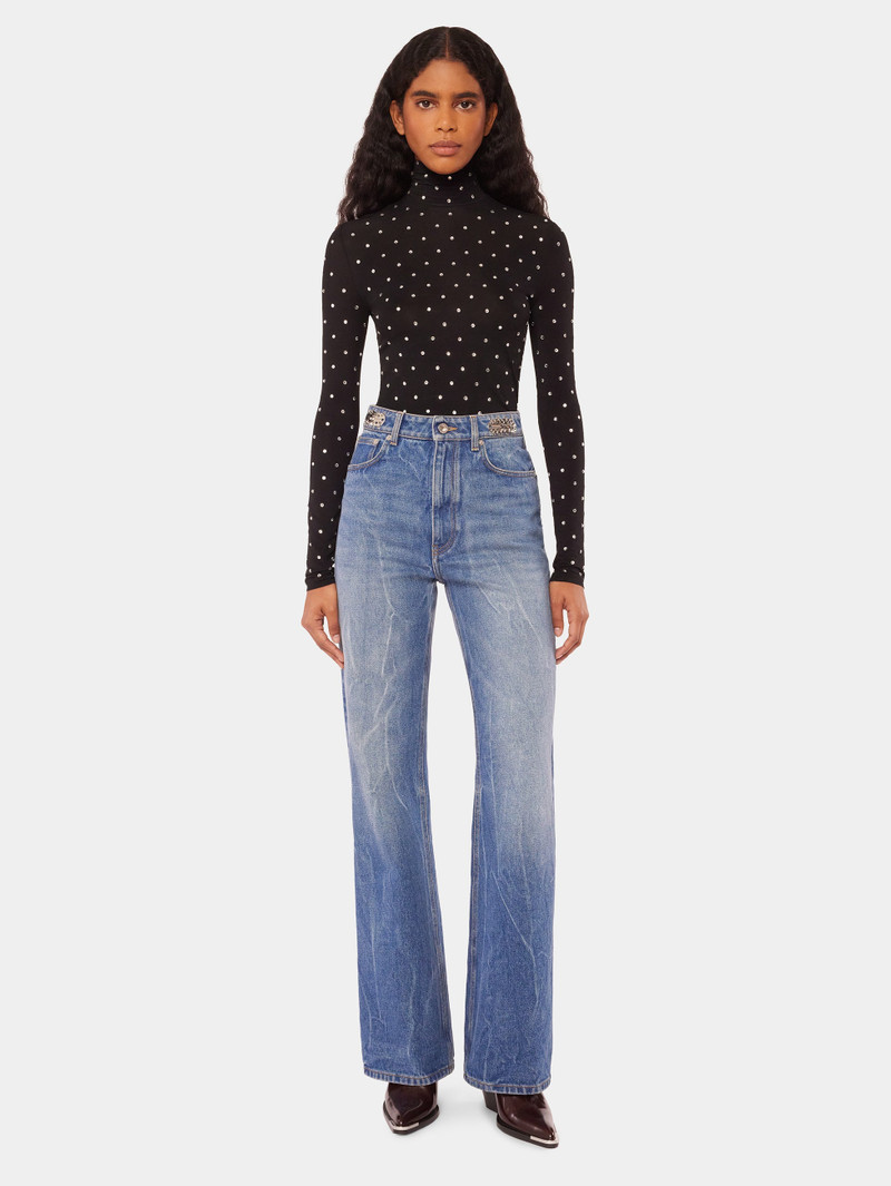 SECOND SKIN TURTLENECK JERSEY TOP WITH CRYSTALS