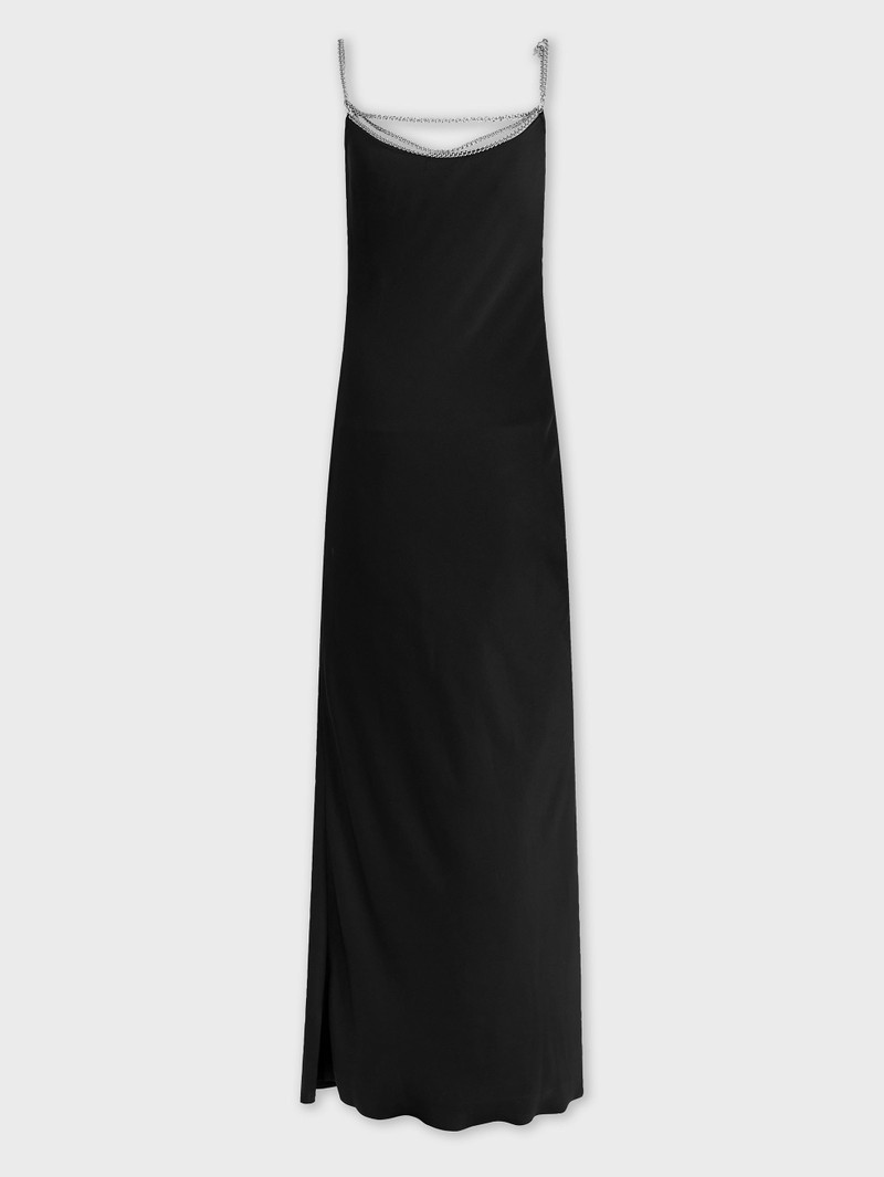 LONG SATIN DRESS WITH CHAIN DETAILS