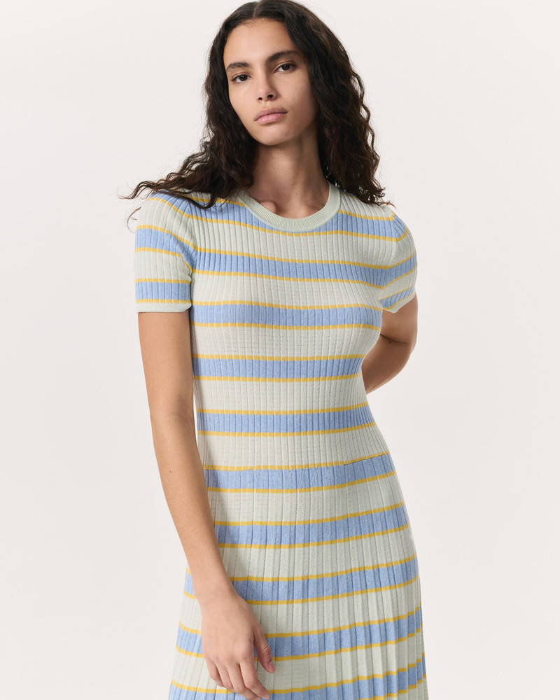 - rag & boneEloise Striped Rib-Knit Pleated Midi Dress