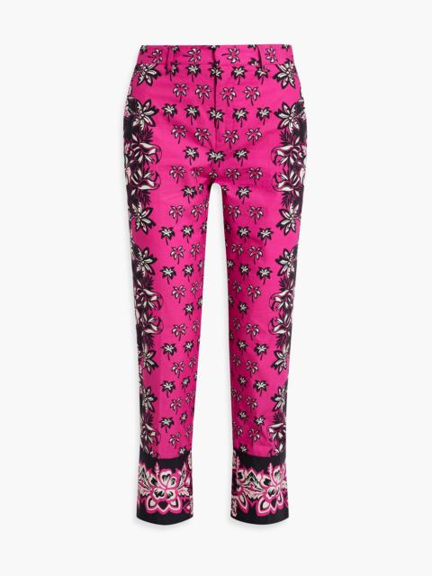 Cropped printed cotton-poplin slim-leg pants