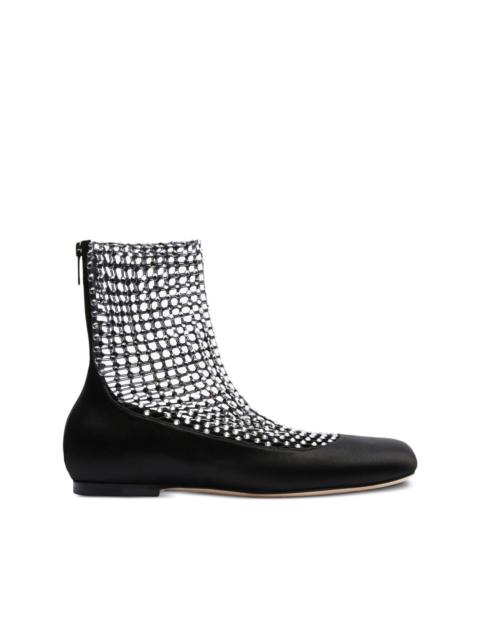 Leather-trimmed crystal-embellished tulle point-toe flats White