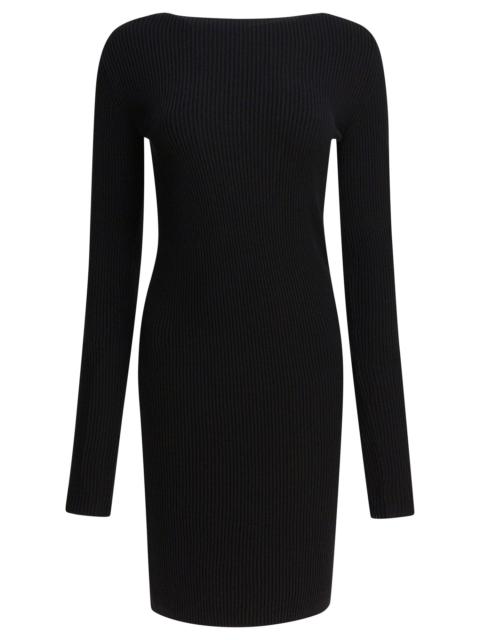 Rick Owens Women 'Athena' Black Asymmetrical Long Dress With Wide Neck And Ribbed Design In Cotton K