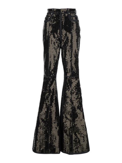 Rick Owens Women 'Bolan' Black Flared Rhinestoned Jeans With Wide Leg In Denim Woman