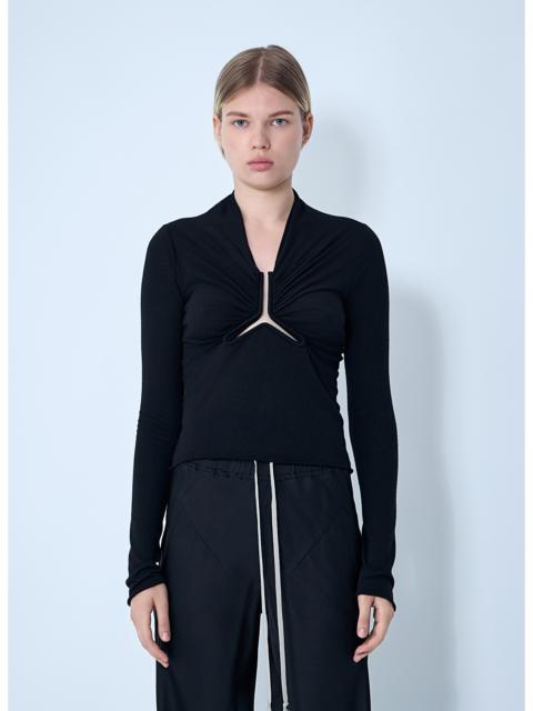 Rick Owens Women Black Top With U-Neck And Ribbed Desgin In Viscose And Silk Blend Woman
